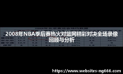 2008年NBA季后赛热火对篮网精彩对决全场录像回顾与分析